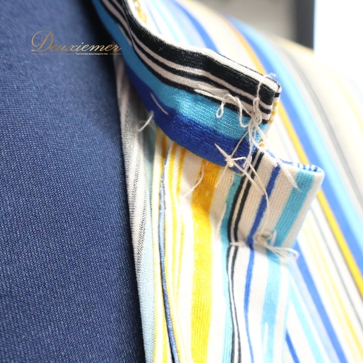 首元の裏側、ラメの縫い目部分にほつれがあります。