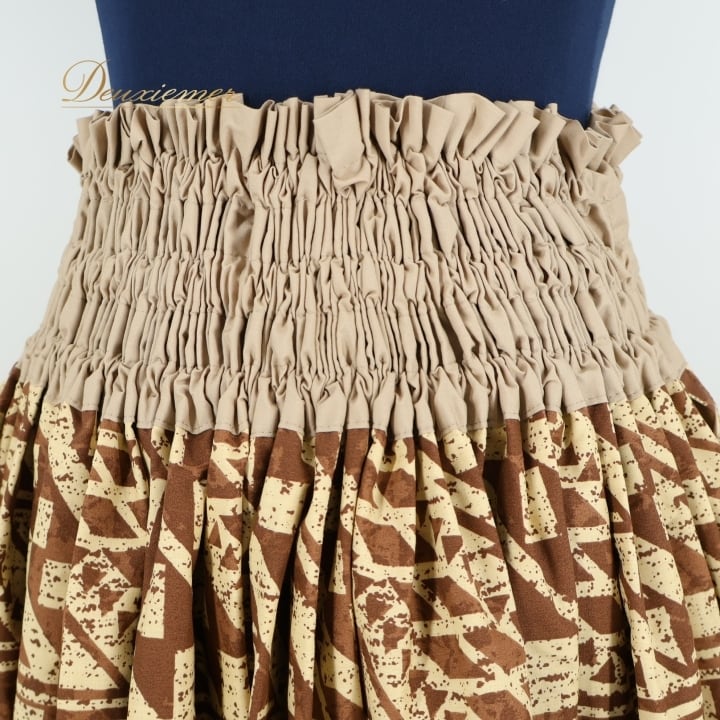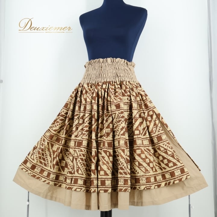 フラダンス 衣装 パウスカート ベージュ系 フラ ダンス レッスン ダブル 茶 ハワイアン アロハ 練習 ハワイアンプリント 落ち着いた色 かわいい スカート ふんわり ブラウン系