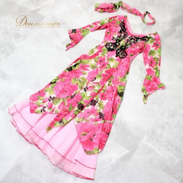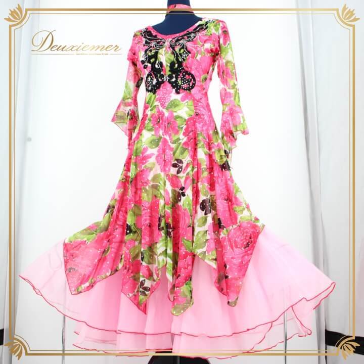 #社交ダンス #ダンス衣装 #ドレス #セクシードレス #フェミニン #花柄 #ブラックピンク #ラインストーン #スタイル #トルソー #ポリエステル #ポリウレタン #ダンススタイル #パーティードレス #コスチューム #エレガント #アーティスティック #女性用 #ファッション #ENUTSU