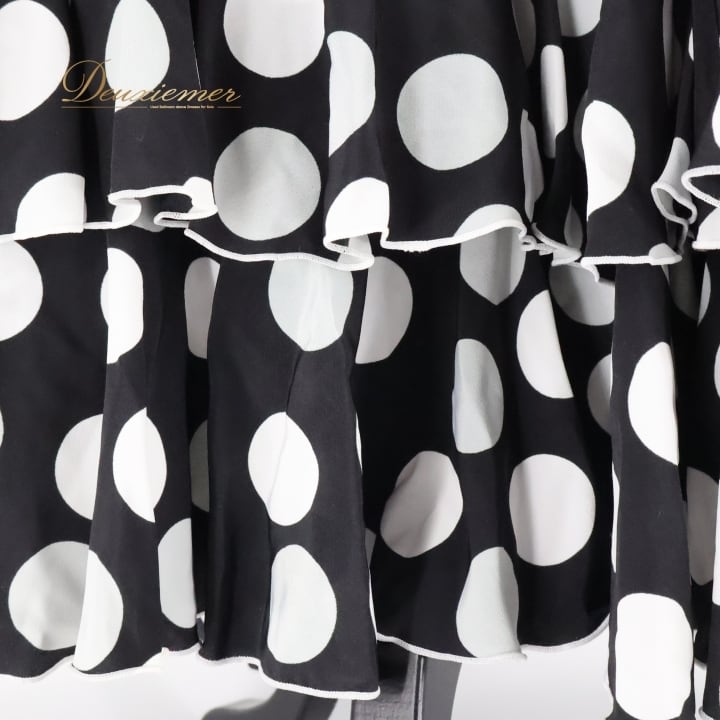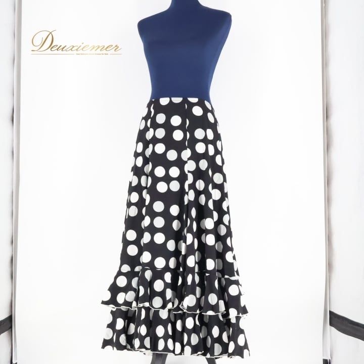 フラメンコ 衣装 ファルダ スカート ボランテ フリル HERMOSA IBERIA エルモサ イベリア ドット 水玉 黒 白 ブラック系 ホワイト系 モノクロ ダンス ステージ用 スカート レディース ファッション おしゃれ かわいい エレガント コスチューム