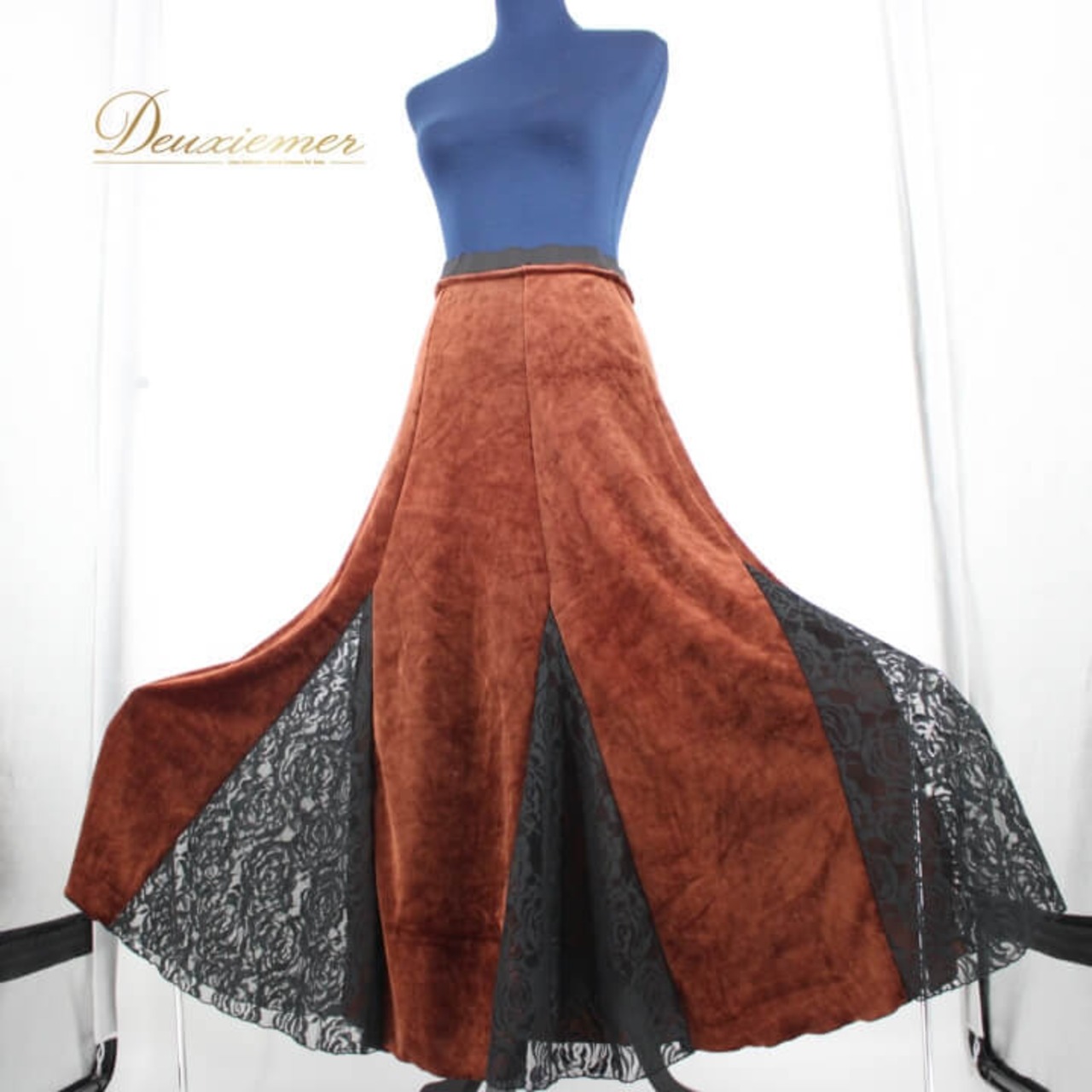 社交ダンス 衣装 スタンダード スカート レッスンウェア レディース オールシーズン ブラック系 ブラウン系 黒 茶色 花柄 レース バイカラー 大人かわいい フレア スカート ロング丈 おしゃれ シック フィット感 伸縮性 お稽古 着やすい ドレッシー