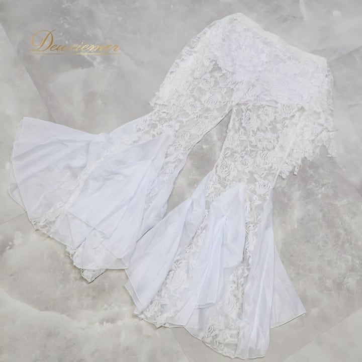 #ベリーダンス #衣装 #ダンスウェア #レッスン着 #フレアパンツ #花柄 #レース #ホワイト #カワイイ #トレーニング #パフォーマンス #アンダーウェア #女性用 #伸縮性 #ゴム仕様 #ダンスコスチューム #アート #ソーシャルダンス #フィットネス #ENUTSU