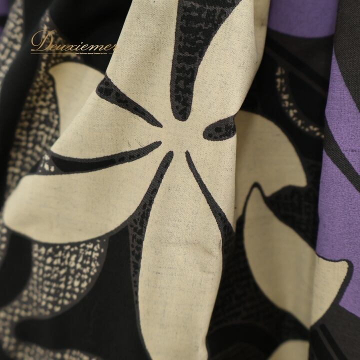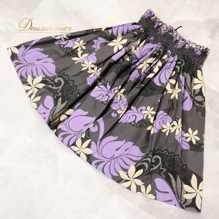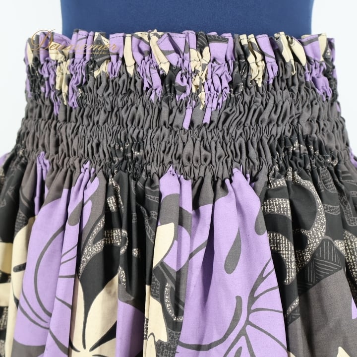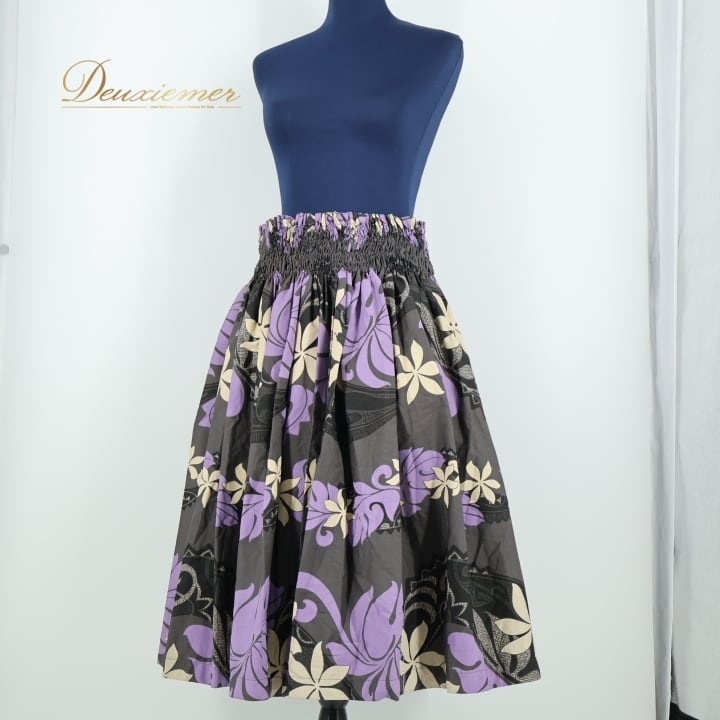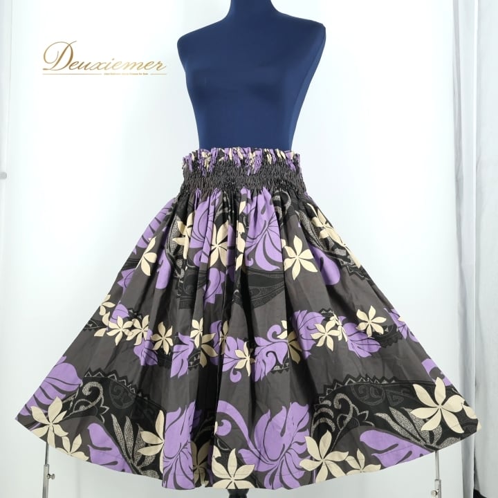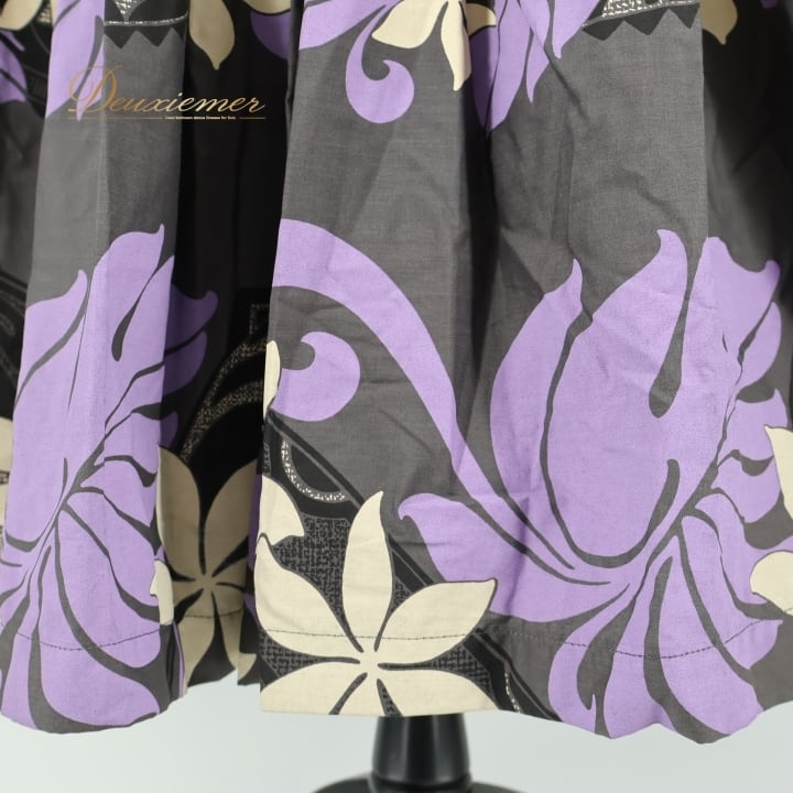 フラダンス 衣装 パウスカート ブラック系 フラ ダンス ティアレ柄 シングル レッスン スミクロ 黒 紫 リーフ柄 花柄 華やか ハワイアン アロハ スカート ふんわり 練習 ハワイアンプリント パープル系 ベージュ系