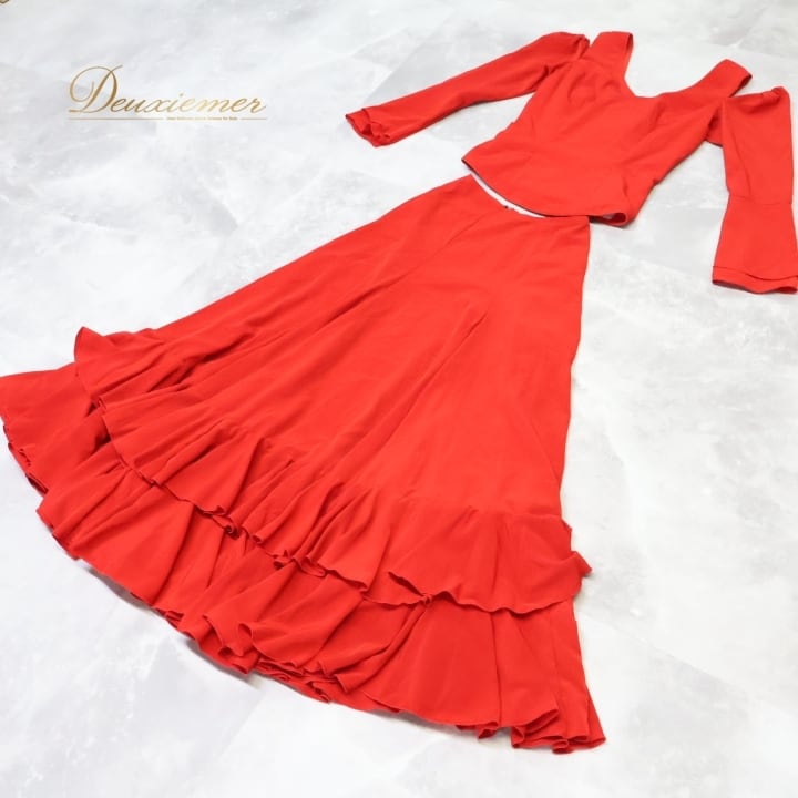 #フラメンコ #衣装 #ツーピース #セットアップ #ダンス衣装 #フラメンコ衣装 #エルモサイベリア #真っ赤 #華やか #ファッション #トルソー #女性向け #コスチューム #舞台衣装 #フラメンコダンス #ダンス #スタイル #パフォーマンス #クイーン #ENUTSU