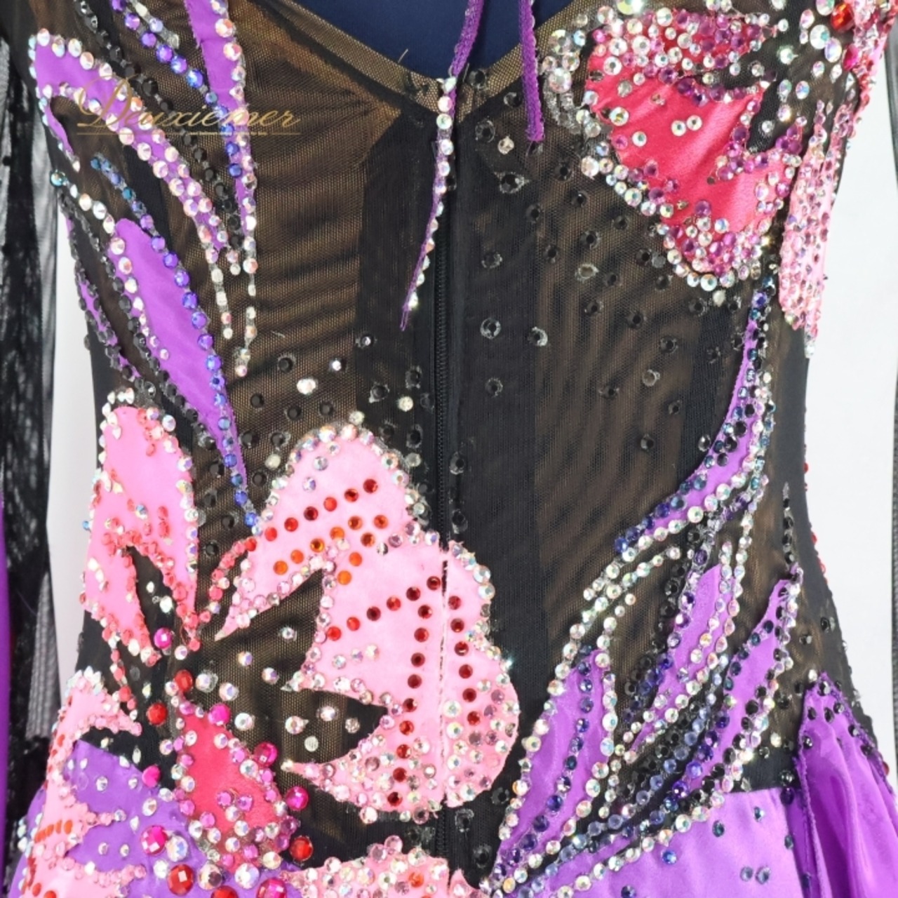 #社交ダンス #ダンス衣装 #ワンピース #ドレス #紫色 #黒色 #光沢感 #高級感 #スカート #トルソー #ファスナー #伸縮性 #肩パッド無し #胸パッド有り #ダンスファッション #パーティードレス #女性用衣装 #特別な日 #おしゃれ #ENUTSU