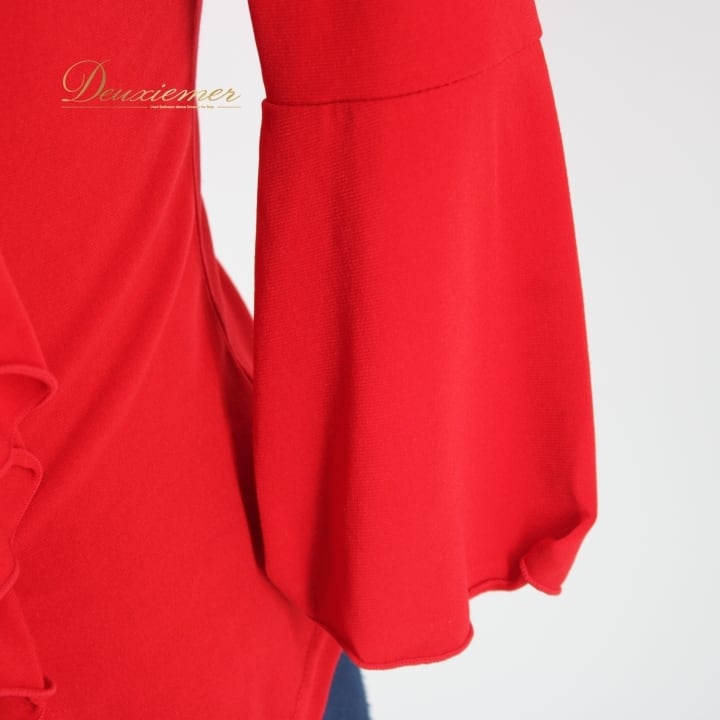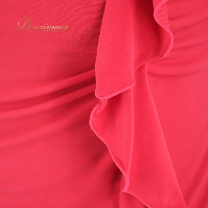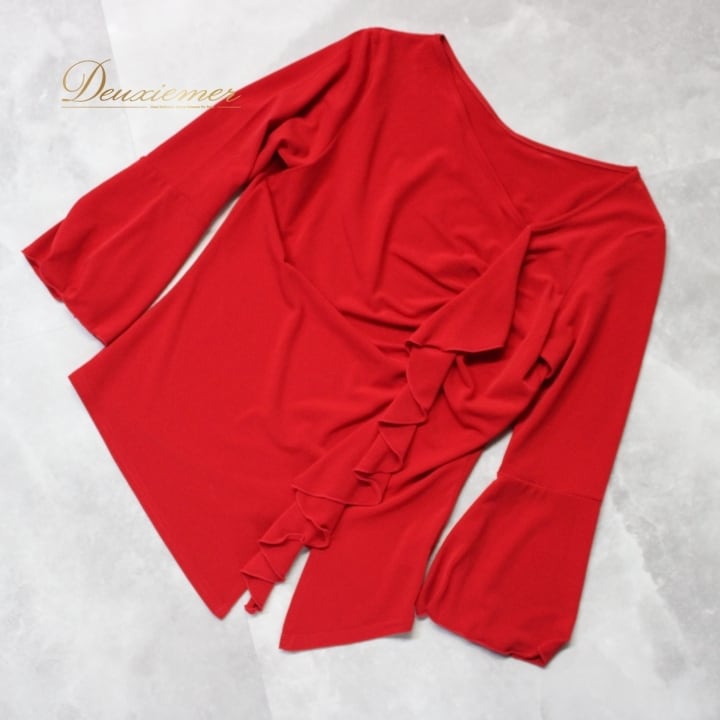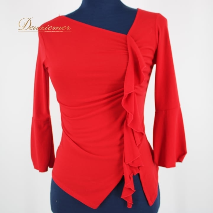 社交ダンス 衣装 スタンダード トップス 練習着 レッスンウェア レディース オールシーズン 赤 SEKINE セキネ レッド系 無地 シンプル 派手 アシメ アシンメトリー フリル フリル付き ドレスアップ おしゃれ レッスン着 スポーツウェア 派手め