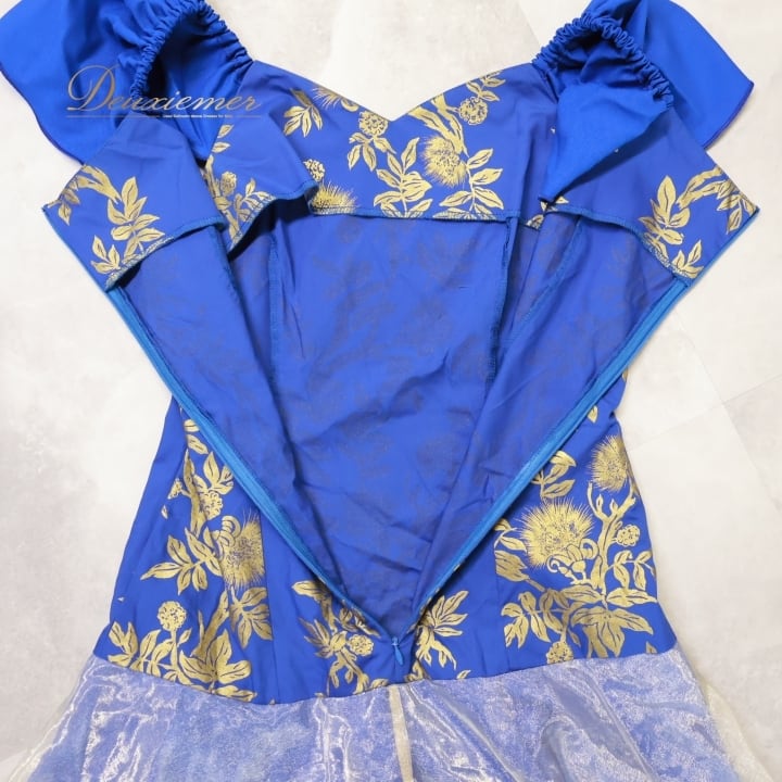 #フラダンス #フラダンス衣装 #ドレス #ワンピース #ブルー #ゴールド #レフア柄 #オーガンジー #衣装 #ダンス #イベント #ビーチスタイル #カジュアルファッション #アロハ #ハワイアン #夏コーデ #おしゃれ #女性用トルソー #ファッション #ENUTSU