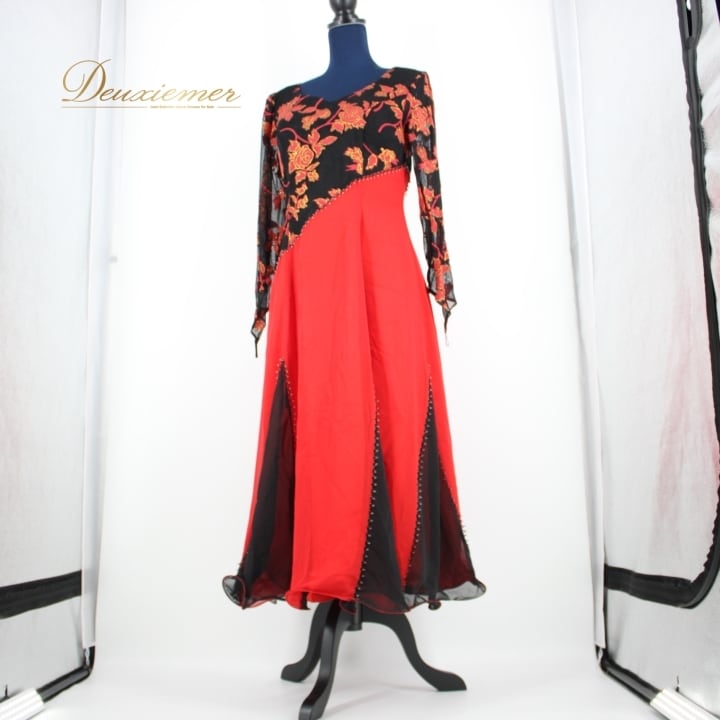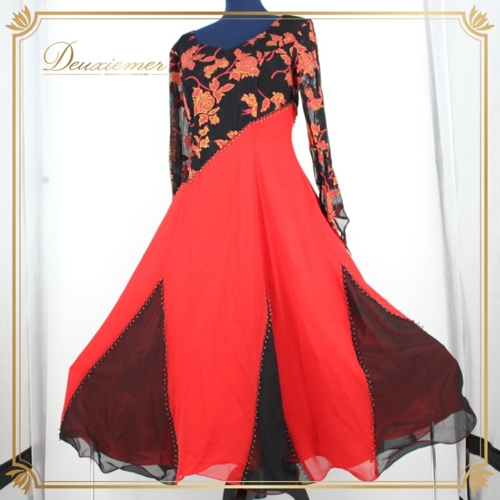 #社交ダンス #ダンス衣装 #ドレス #Mamin #マーミン #社交ダンスドレス #花柄 #ブラックレッド #シックスタイル #二重スカート #舞踏会 #パーティードレス #ファッション #レディースファッション #ダンスコスチューム #オシャレ #スリムフィット #ポリエステル #ダンスイベント #ENUTSU