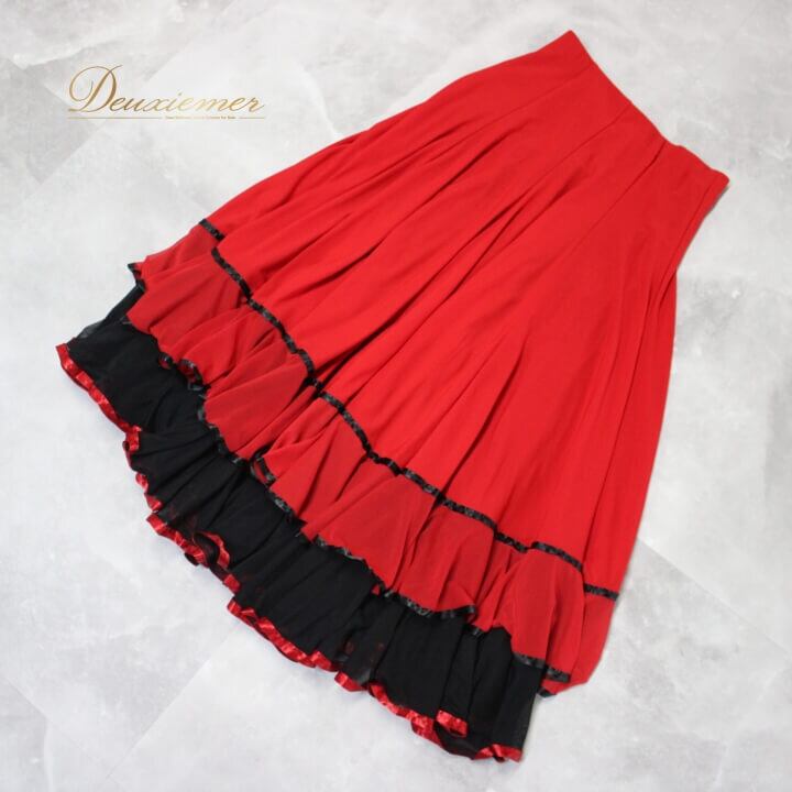 社交ダンス 衣装 スタンダード スカート レッスンウェア 練習着 女性用 レディース オールシーズン 黒 赤 A vivare アビバーレ ブラック系 レッド系 バイカラー 派手 社交ダンス スカート 女性 ダンスウェア プロフェッショナル 伸縮性 おしゃれ