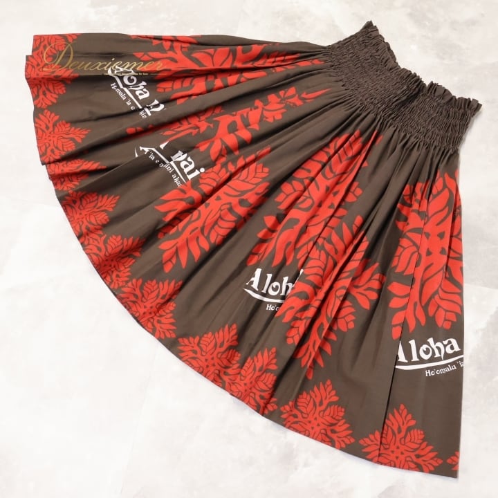 フラダンス 衣装 パウスカート ブラウン系 エムエムジェイ フラ ダンス レッスン シングル 茶 赤 華やか キルト柄 MMJ 日本製 ハワイアン アロハ スカート ふんわり ハワイアンプリント レッド系 ホワイト系