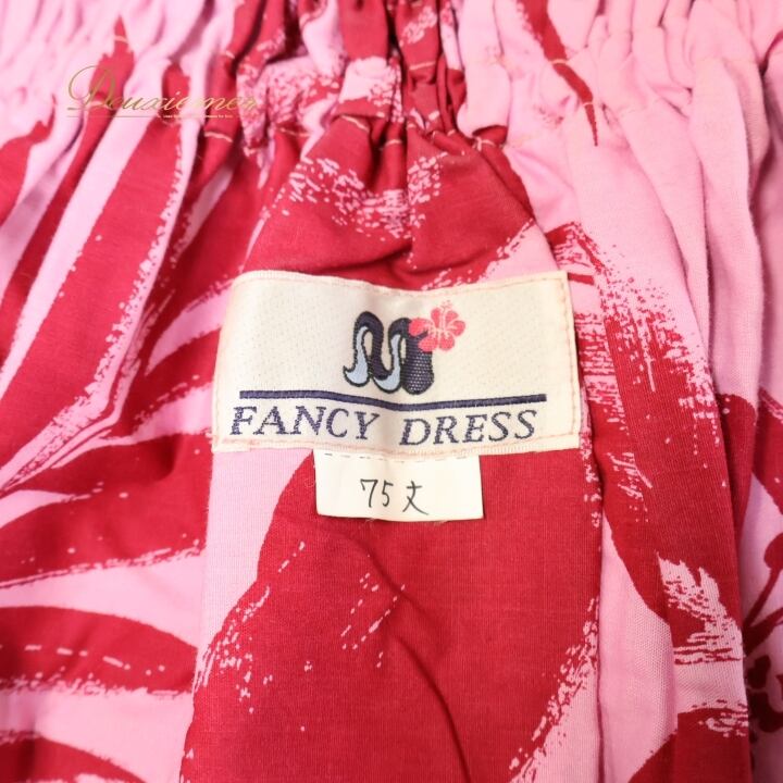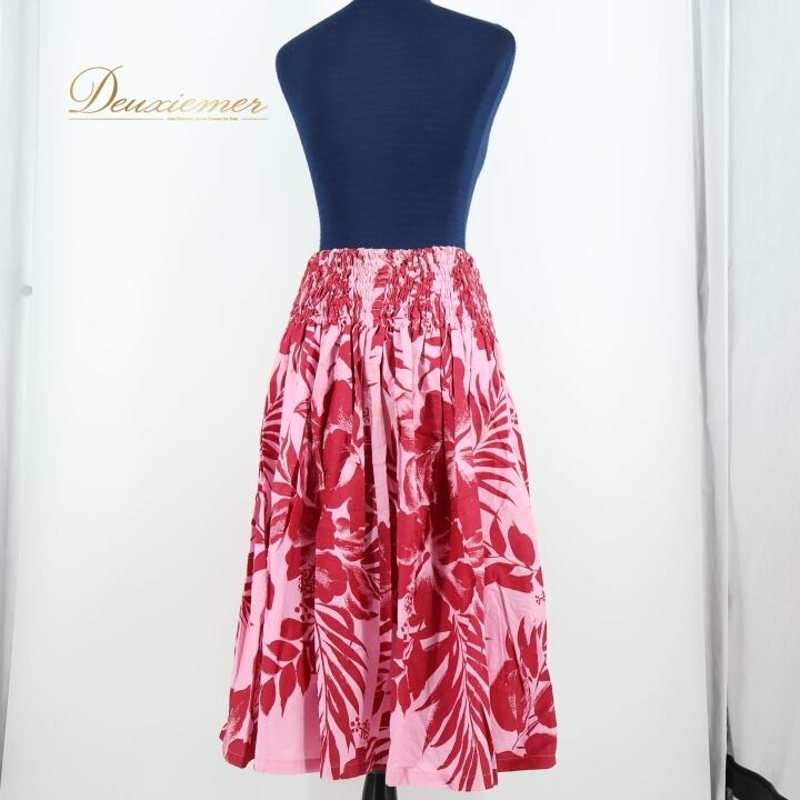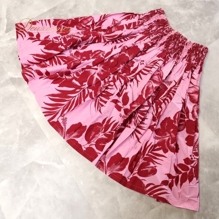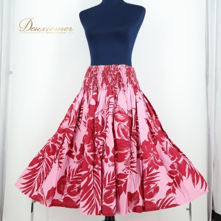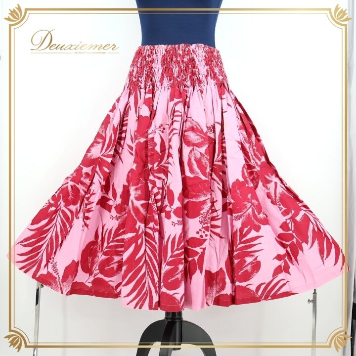 フラダンス 衣装 パウスカート ピンク系 ファンシードレス シングル フラ ダンス ハイビスカス柄 華やか ハワイアン レッスン 練習 アロハ かわいい 花柄 FANCY DRESS スカート ふんわり レッド系
