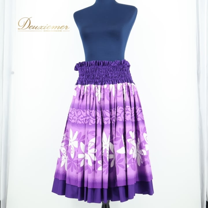 フラダンス 衣装 パウスカート パープル系 フラ ダンス ダブル 紫 白 ティアレ柄 ハワイアン アロハ 花柄 鮮やか かわいい スカート ふんわり ハワイアンプリント レッスン 練習 ホワイト系