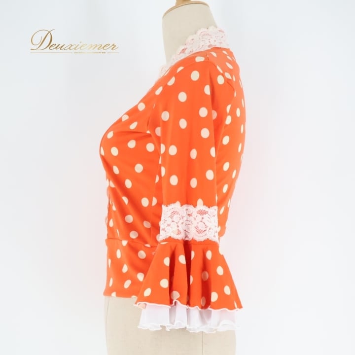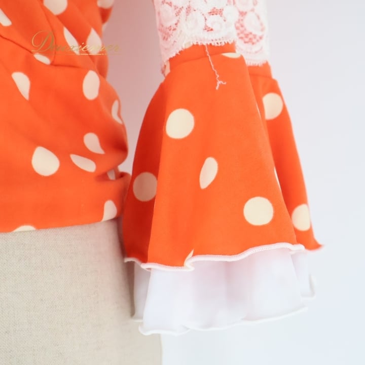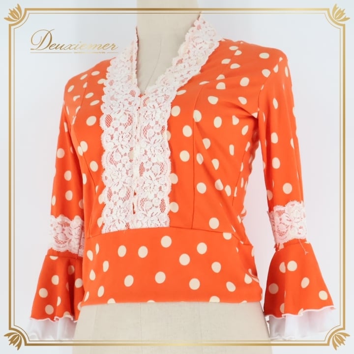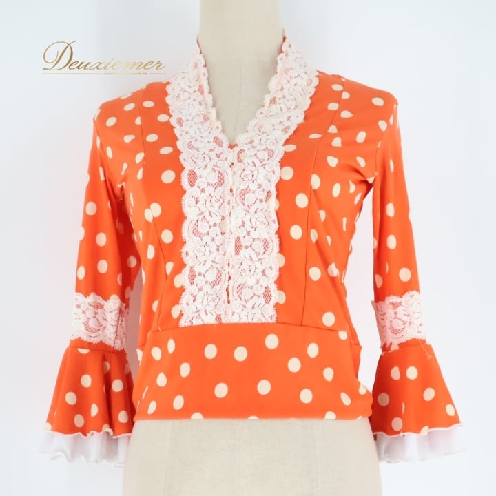 フラメンコ 衣装 トップス ブラウス ドット 水玉 フリル レース オレンジ系 ホワイト系 DOSE del Flamenco ドセデルフラメンコ 伸縮 ストレッチ フラメンコ衣装 おしゃれ かわいい レディース カジュアル パーティー ダンス衣装 イベント用 スタイリッシュ 青系 赤系 ホワイト系