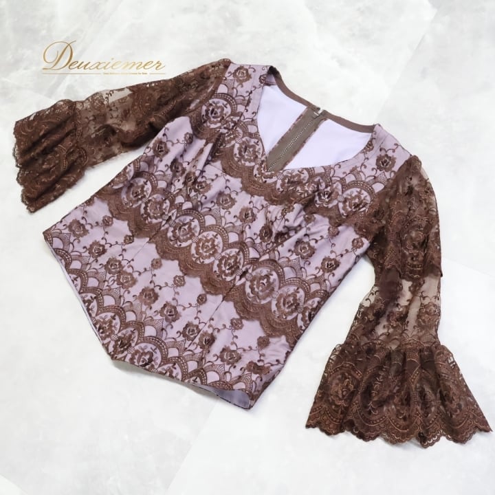 フラメンコ 衣装 トップス ブラウス 紫 茶色 レース フリル 高級感 お洒落 ダンス パーティ 発表会 パープル系 ブラウン系 エレガント 花柄 デザイン ファッション 女性用 パーティ 上品 カジュアル