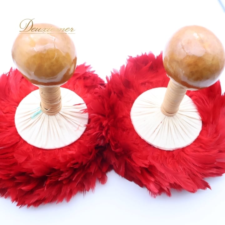 フラダンス ウリウリ マラカス 小物 小道具 楽器 レッド系 赤 イエロー系 黄色 民族舞踊 ダンス タヒチアンダンス 一体型 羽 ファー 舞台 イベント ウリウリ フラ ダンス小物 民族楽器 カラフル 発表会