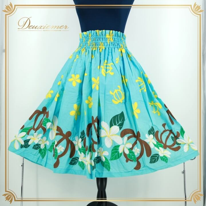 #フラダンス #ハワイアン #パウスカート #ホヌ柄 #プルメリア #水色 #フラダンス衣装 #ウエストゴム #ダンス衣装 #ファッション #リゾートスタイル #ビーチ #夏コーデ #トルソー #女性用トルソー #ワンピース #カジュアル #花柄 #エスニック #ENUTSU