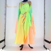 社交ダンス 衣装 白樺ドレス スタンダード ドレス スタンダードドレス ワンピース フロート デモ 競技 ダンス パーティ 発表会 黄緑 オレンジ 蛍光 レース グリーン系 オレンジ系 フロア映え ドレスアップ 高級感 コスチューム ステージ衣装 パフォーマンス用