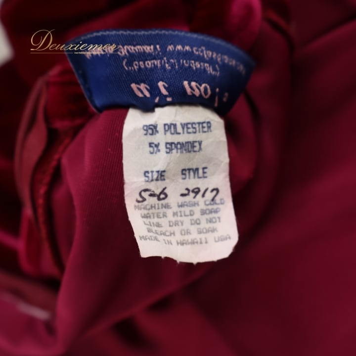 フラダンス 衣装 ワンピース ドレス ピンク系 u'ino! フラ ダンス ラウアエ柄 パラパライ柄 ワインレッド系 ベロア 光沢 華やか ハワイアン アロハ 高級感 鮮やか ハワイ製 ハワイアンプリント フリル uino