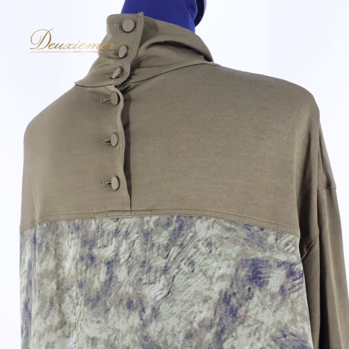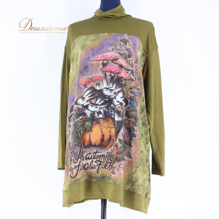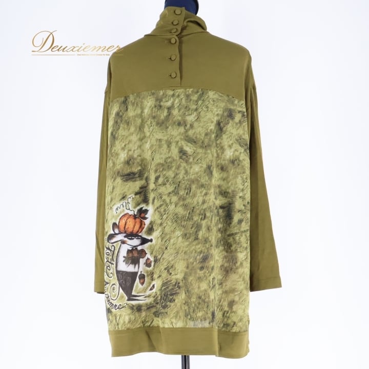 レディース トクコプルミエヴォル TOKUKO 1er VOL トップス チュニック ブラウス タートルネック 緑 黄色 カーキ 柄 模様 薄い 軽い 伸縮 ストレッチ イエロー系 グリーン系 日本製 トップス レディースファッション オシャレ 秋冬 カジュアル コーディネート 大人可愛い 軽量 日本製素材 ゆったりスタイル