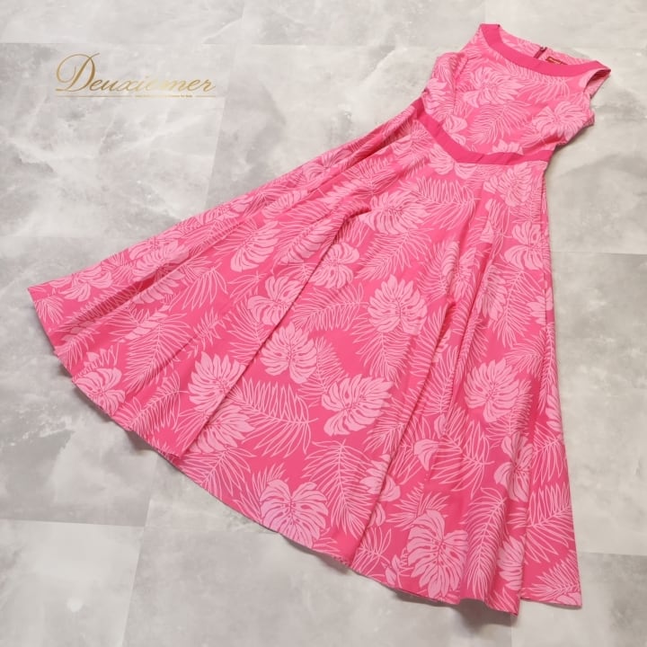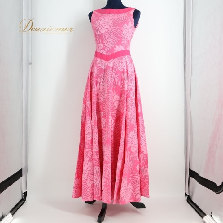 #フラダンス #フラダンス衣装 #ワンピース #ドレス #日本製 #モンステラ #ヤシ柄 #鮮やかなピンク #ダンス衣装 #アウトドアイベント #ハワイアンファッション #ビーチスタイル #カジュアルファッション #リゾートコーデ #トロピカル #夏祭り #ホリデーコーデ #女性用トルソー #サイズM #ENUTSU