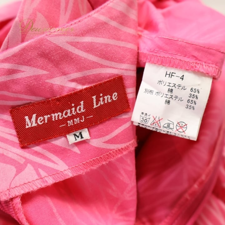 フラダンス 衣装 ワンピース ドレス ピンク系 マーメイドライン フラ ダンス ヤシ柄 モンステラ柄 ハワイアン ノースリーブ 袖なし 華やか 鮮やか MermaidLine MMJ 日本製 エムエムジェイ ハワイアンプリント