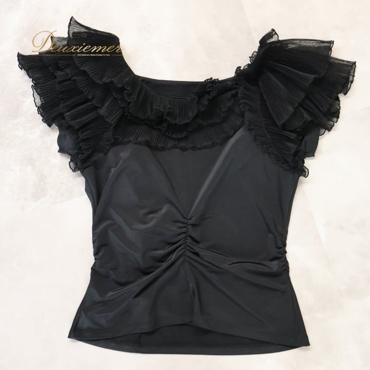 #社交ダンス #ダンス衣装 #ダンスブラウス #チャコット #ロイヤルダンス #フリルトップス #ブラック衣装 #ダンスファッション #女性用衣装 #Mサイズ #ポリエステル #ポリウレタン #伸縮性 #ダンスレッスン #パフォーマンス衣装 #おしゃれ #ダンサー #舞台衣装 #ダンススタイル #社交ダンス衣装 #ENUTSU