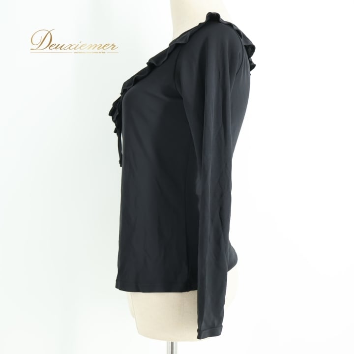 #社交ダンス #ダンス衣装 #ブラウス #トップス #Chacott #チャコット #日本製 #フリル #オールブラック #ダンスファッション #女性用トルソー #伸縮性 #レーヨン #ポリエステル #華やか #おしゃれ #ダンススタイル #衣装選び #パフォーマンス #ENUTSU