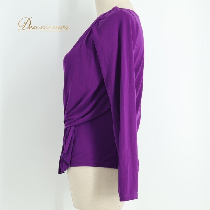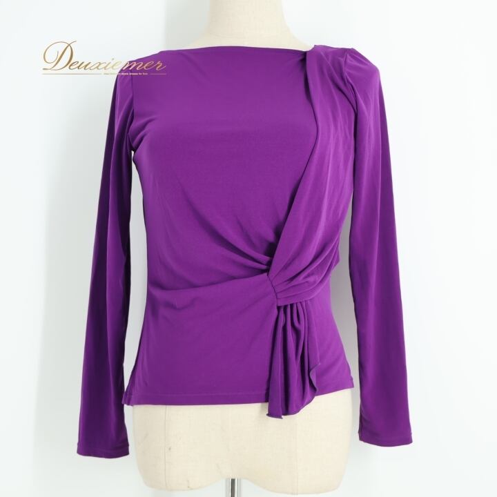 社交ダンス 衣装 トップス ブラウス パープル系 チャコット Chacott 紫 無地 シンプル レッスン 伸縮 ストレッチ 長袖 鮮やか ドレープ 上品 練習