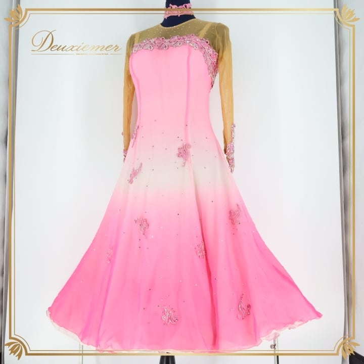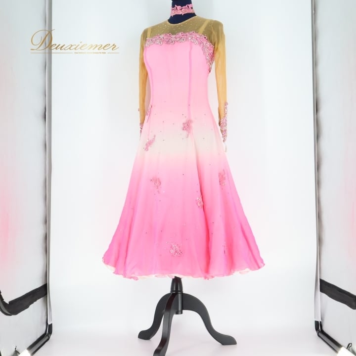 社交ダンス 衣装 スタンダードドレス スタンダード ドレス ワンピース グラデーション デモ 競技 ダンス パーティ 発表会 ピンク系 ホワイト系 SORELI ソレリ 日本製 女性用 フレアスカート ステージ衣装 発表会用 エレガント