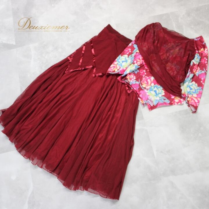 #社交ダンス衣装 #ダンス衣装 #セットアップ #レッド #花柄 #レース #ポリエステル #ポリウレタン #ファッション #ダンスファッション #パーティー服 #女性用衣装 #エレガント #伸縮性 #ウエストゴム #舞台衣装 #ダンス #ダンスパフォーマンス #トルソー #ENUTSU