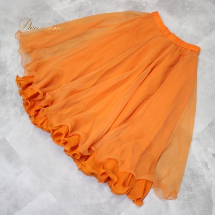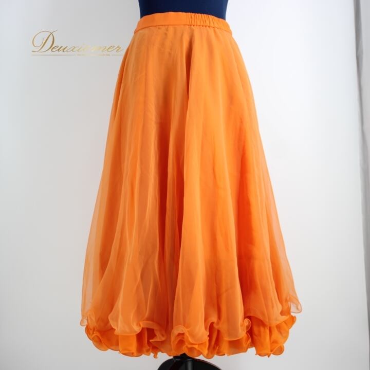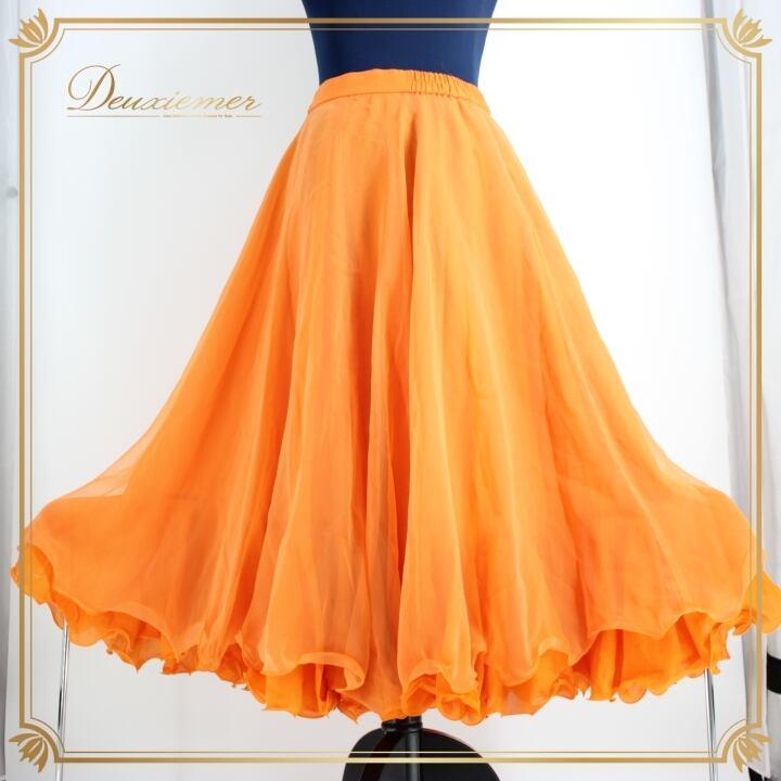 社交ダンス 衣装 スタンダード スカート レッスンウェア 女性用 レディース オールシーズン オレンジ系 無地 U:NA ユーナ シンプル 透け感 社交ダンス 衣装 スカート ダンスウェア オレンジ色 軽量 ボリューム メイドインジャパン 鮮やか 動きやすい