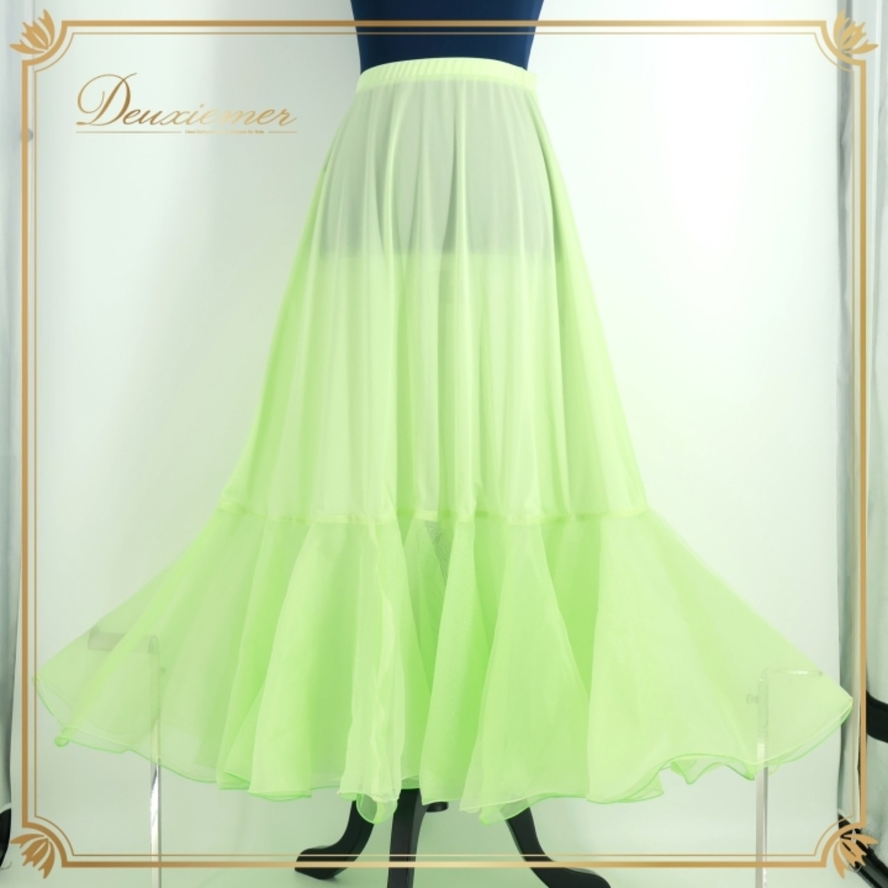 社交ダンス 衣装 スカート ペチコート チャコット Chacott グリーン系 無地 シンプル 黄緑 爽やか 明るい 日本製 2枚重ね ボリューム ダンス衣装 重ね着