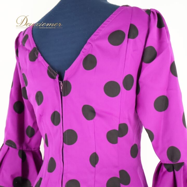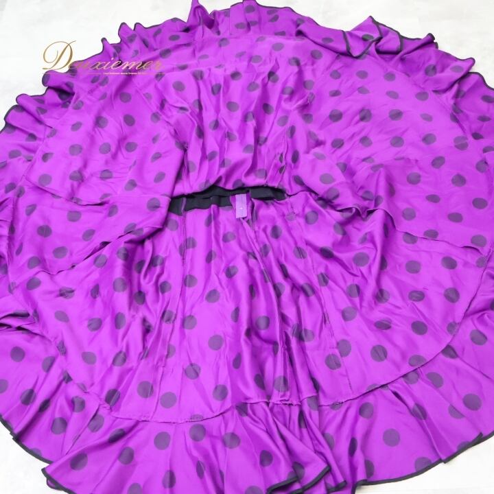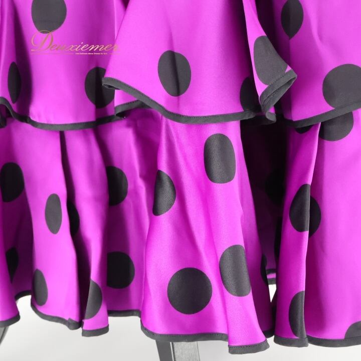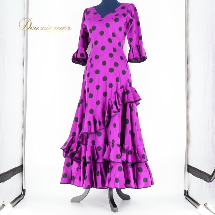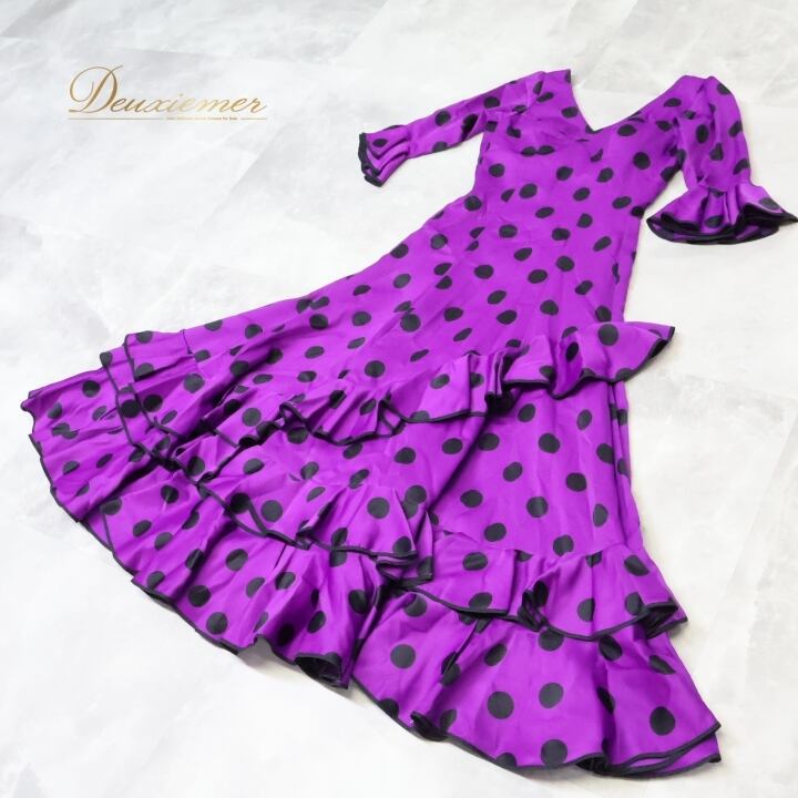 フラメンコ 衣装 ワンピース ドレス 紫 黒 ボランテ フリル ドット 水玉 ダンス Tierra ティアエラ 日本製 パーティ 発表会 パープル系 ブラック系 フラメンコドレス おしゃれ ワンピースドレス ステージ衣装 カラフル ダンス衣装 フリルドレス モダンダンス 日本製ドレス 踊り 可愛いデザイン パープルドレス イベント コスチューム