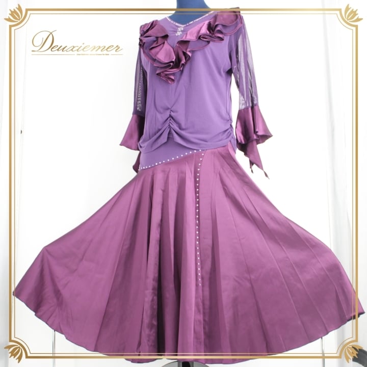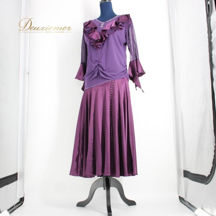 #社交ダンス #ダンス衣装 #ダンスウェア #社交ダンス衣装 #セットアップ #舞台衣装 #ダンスファッション #ポリウレタン #ポリエステル #スカート #ラインストーン #パープル #伸縮性 #ウエストゴム #トルソー #女性用トルソー #ダンスパフォーマンス #舞台映え #ファッション #ENUTSU