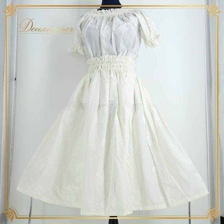 #フラダンス #衣装 #ツーピース #セットアップ #上下セット #ホワイト #レフア柄 #ダンスコスチューム #トルソー #サイズなし #ウエストゴム #夏コーデ #リゾートファッション #ハワイアンスタイル #かわいい #女性用 #ダンスウェア #パーティー #ビーチスタイル #ENUTSU