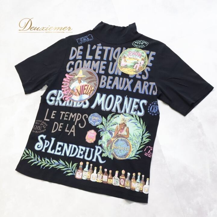レディース トクコプルミエヴォル TOKUKO 1er VOL トップス タートルネック ハワイ 柄 模様 黒 秋服 ブラック系 日本製 ハワイアン かわいい おしゃれ デザイン 秋冬カジュアル レディースファッション タートルネックトップス ブラックカットソートクコ