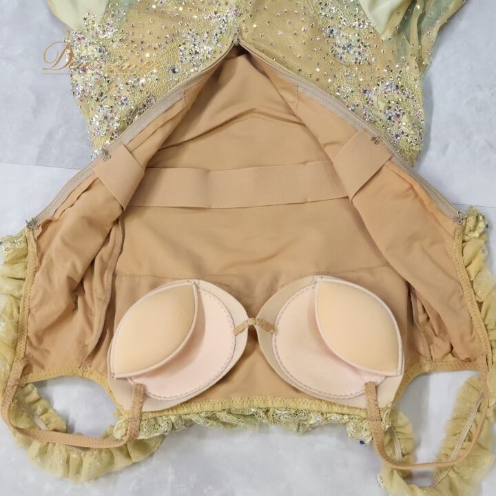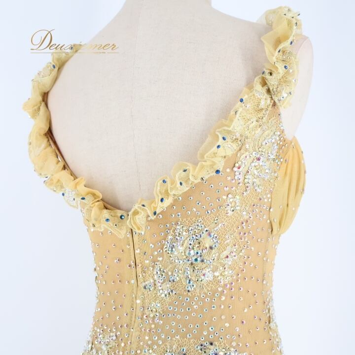 #社交ダンス #ダンス衣装 #ワンピース #ドレス #TAKADANCE #タカダンス #高級感 #ゴールドベージュ #豪華デザイン #羽飾り #ダンスファッション #トルソー #サイズ7号 #伸縮性 #胸パッド #女性用 #ダンススタイル #パフォーマンス衣装 #ダンス好き #ENUTSU