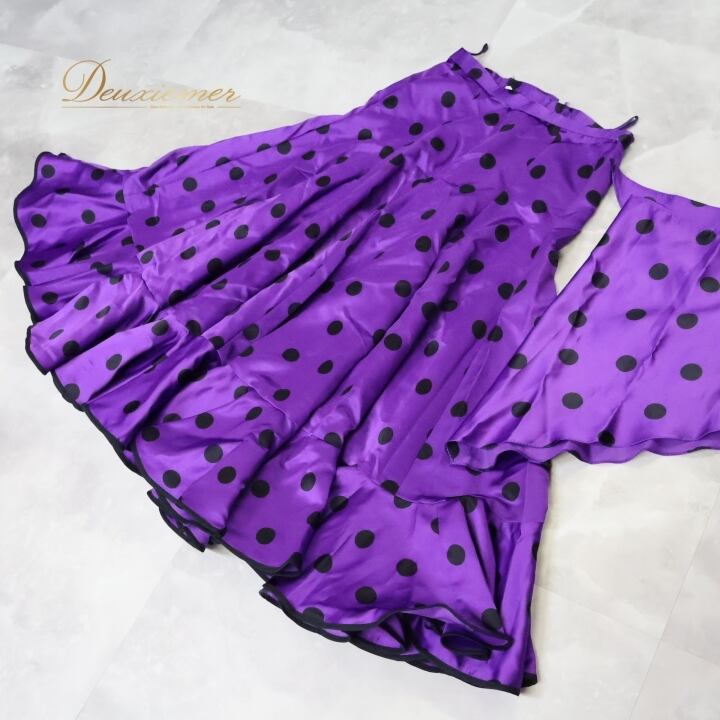 フラメンコ 衣装 ファルダ スカート シージョ ボランテ フリル 紫 黒 水玉 ドット パープル系 ブラック系 ダンス パーティ 発表会 スカート エレガント フォーマル 大人 レディース さわやか 華やか コスチューム ダンス衣装 フルスカート 光沢感