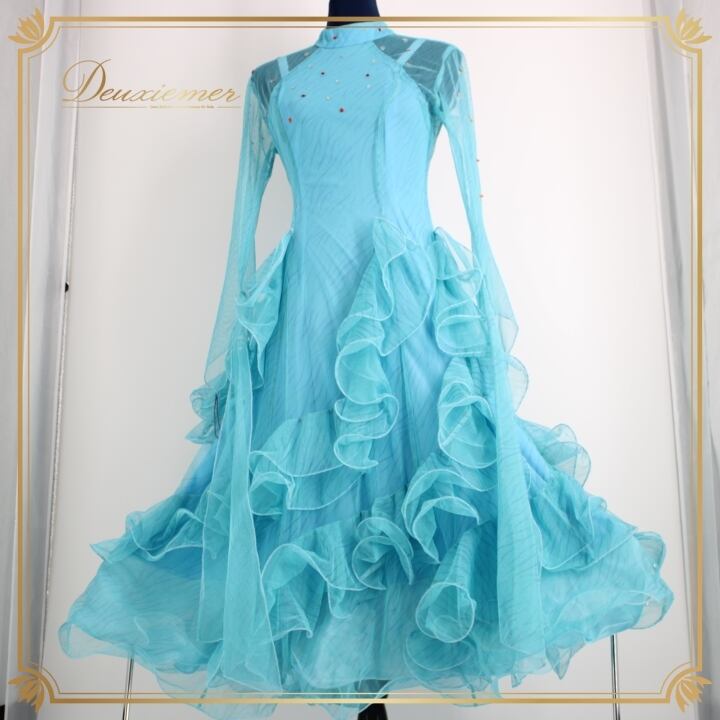 #社交ダンス #ダンス衣装 #舞踏 #ドレス #ライトブルー #二重スカート #優雅 #フロートデザイン #ポリエステル #ダンスファッション #ダンスパフォーマンス #女性用衣装 #トルソー #季節感 #軽やか #動きやすい #スタイル #ダンススタイル #社交ダンスドレス #ENUTSU