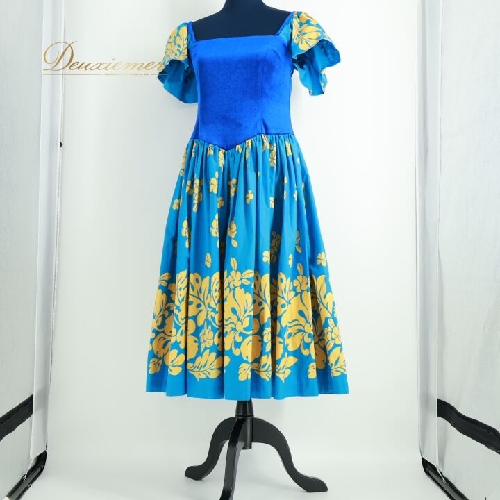 #フラダンス #衣装 #ワンピース #ドレス #ハワイアン #フラダンス衣装 #ブルー #イエロー #花柄 #高級感 #女性用 #トルソー #ダンス衣装 #カラフル #ファッション #おしゃれ #夏 #イベント #パーティー #ENUTSU