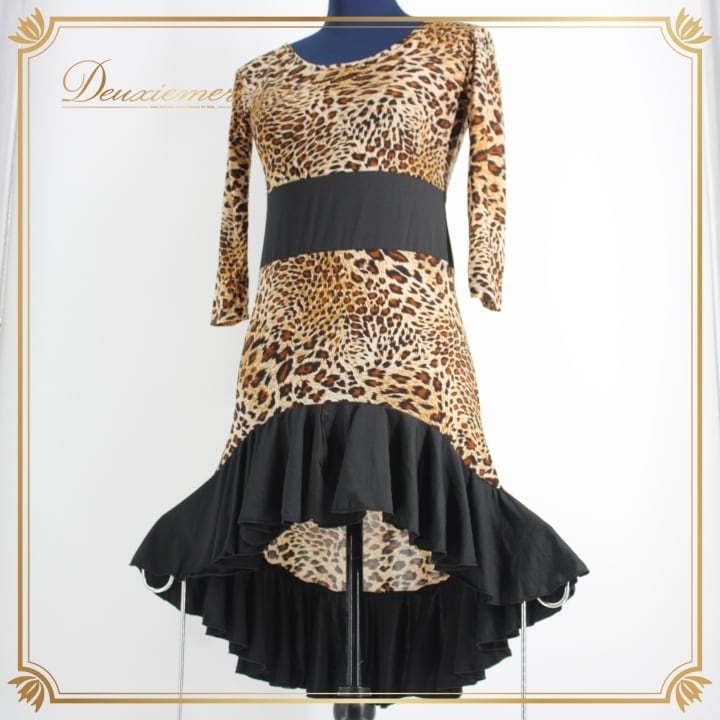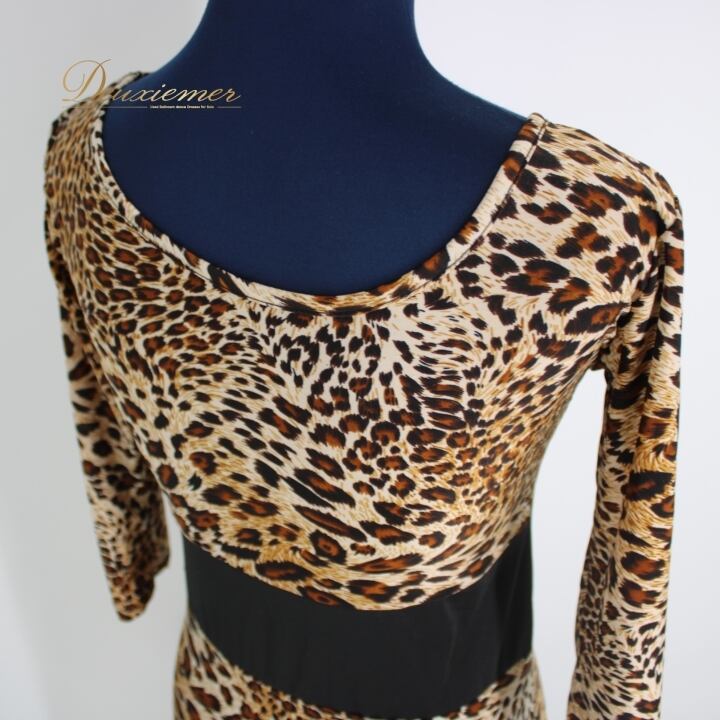 #社交ダンス #ダンス衣装 #ヒョウ柄 #ブラックブラウン #シックスタイル #ダンスドレス #サイズ9号 #女性ファッション #伸縮性 #おしゃれ #トルソー #ダンスウェア #社交ダンス衣装 #カスタムフィット #スタイリッシュ #ダンスパフォーマンス #衣装見本 #コーディネート #特別な夜 #ENUTSU