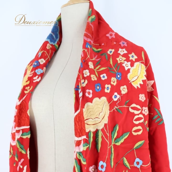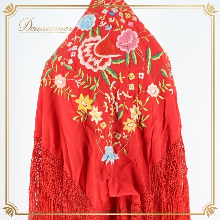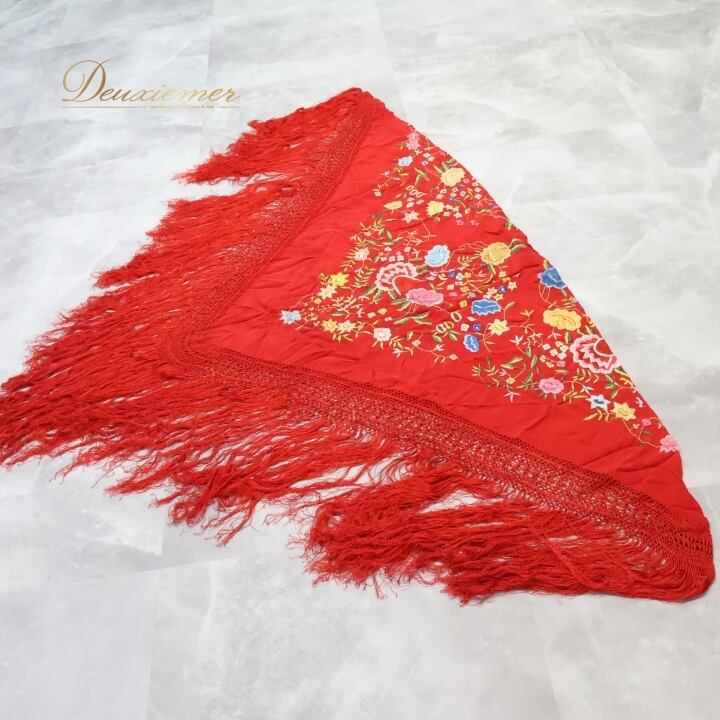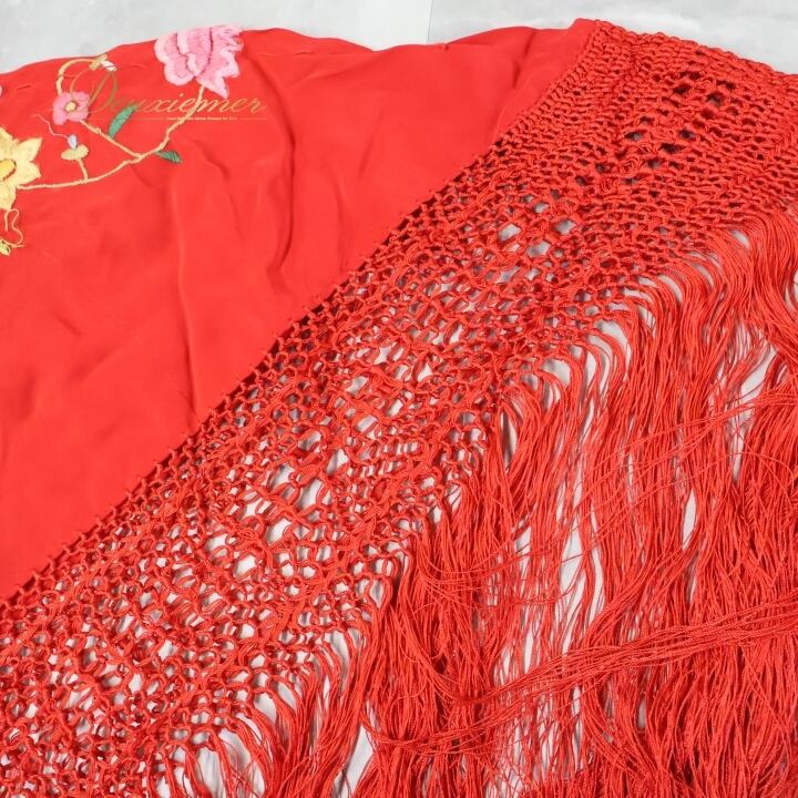 フラメンコ 衣装 マントン シージョ 赤 刺繍 フレコ フリンジ 花柄 ダンス 舞台 パーティ 発表会 レッド系 おしゃれ デザイン ステージ 衣装 パフォーマンス レディース フリンジ付き 刺繍入り 大人用 フェス コスチューム 伝統的 スペイン フラメンコダンス