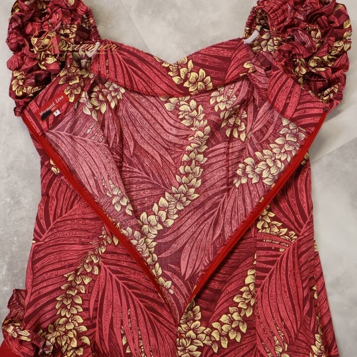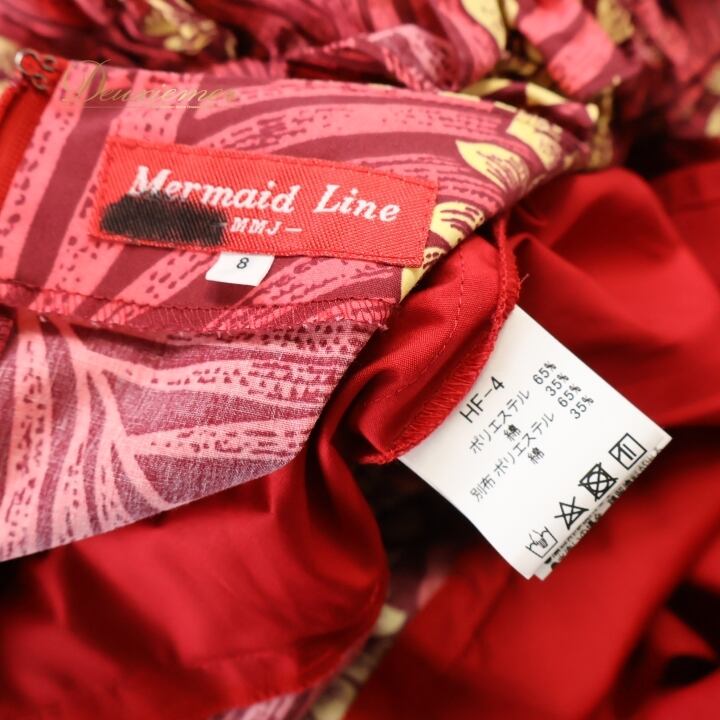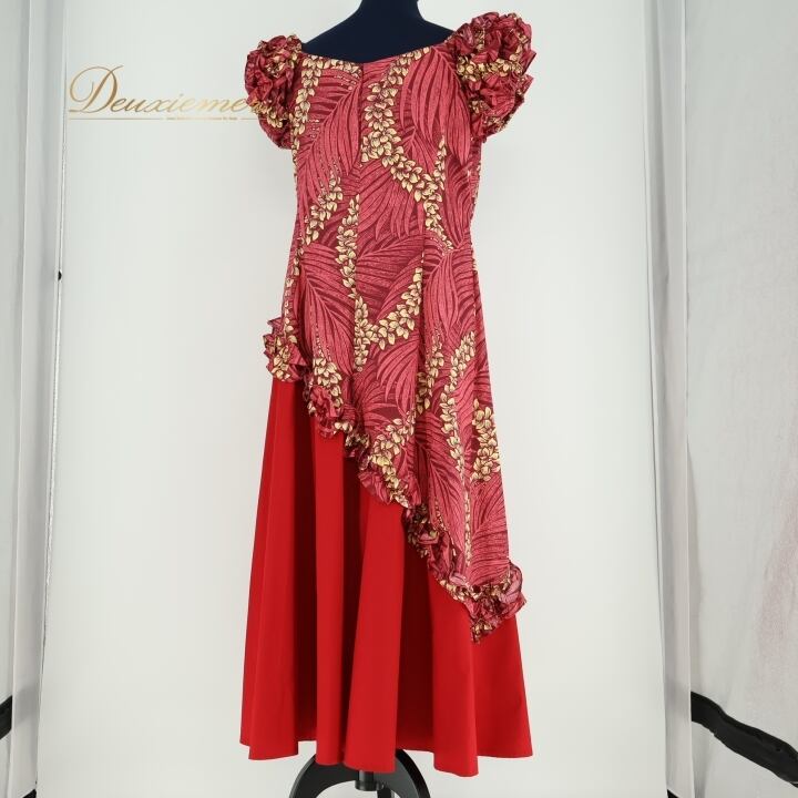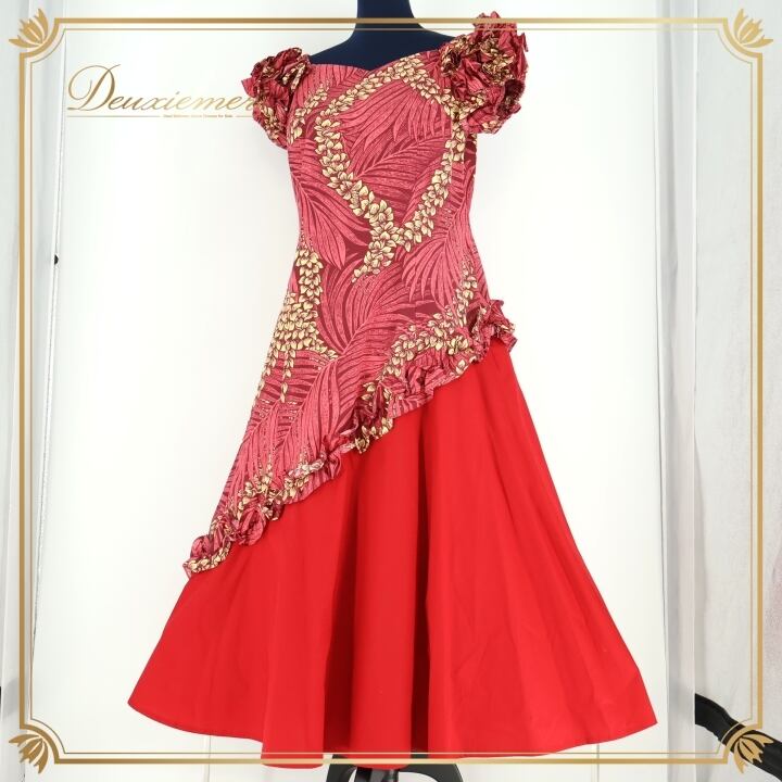 #フラダンス #衣装 #ドレス #ワンピース #日本製 #マーメイドライン #レッド #イエロー #花柄 #フリル #華やか #ファッション #ダンス #イベント #レディースファッション #サイズ8 #ポリエステル #綿 #総丈 #ENUTSU