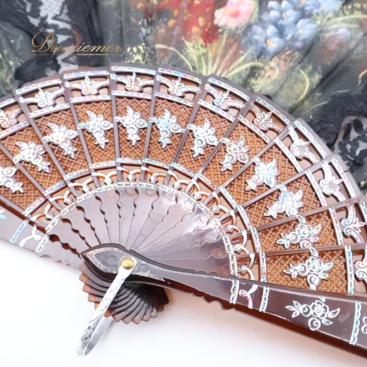 フラメンコ アバニコ 扇子 小物 小道具 23.5cm ブラック系 黒 ブラウン系 茶色 シルバー 花柄 カラフル レース ラメ アイテム 練習 舞台 イベント 発表会 花モチーフ ダンス小道具 フェスティバル ステージ衣装