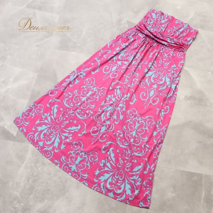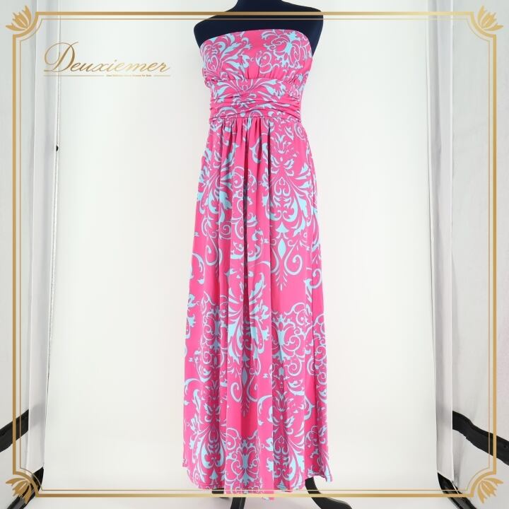 フラダンス 衣装 ワンピース ドレス ピンク系 フラ ダンス タヒチアン 水色 チューブトップ 伸縮 ストレッチ ハワイアン アロハ 華やか 明るい 総柄 ブルー系