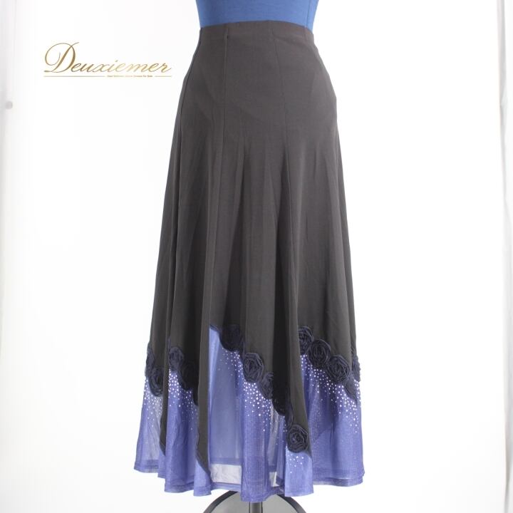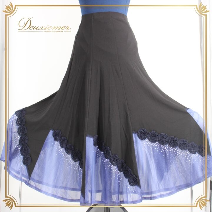 #社交ダンス #ダンス衣装 #スカート #ブルー #ブラック #ラインストーン #ウエストゴム #伸縮性 #ポリエステル #ポリウレタン #ダンスファッション #ダンス好き #ダンスウェア #ダンススタイル #祭り衣装 #パフォーマンス衣装 #女性用衣装 #トルソー #衣装制作 #ENUTSU