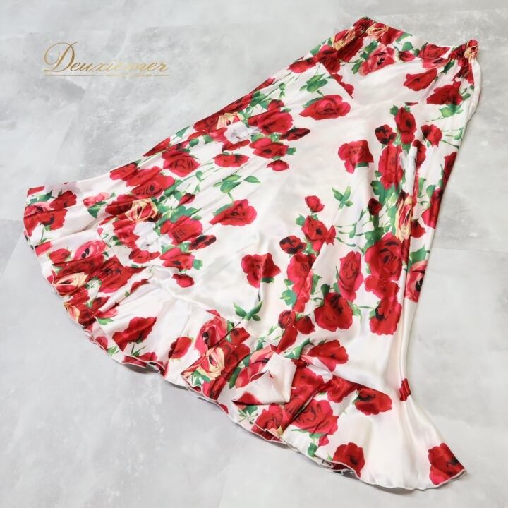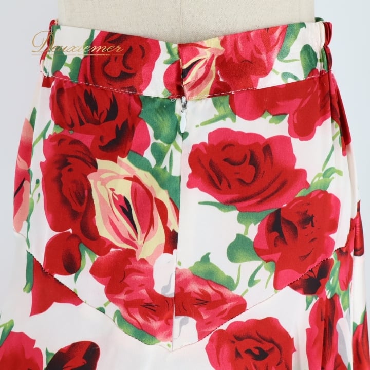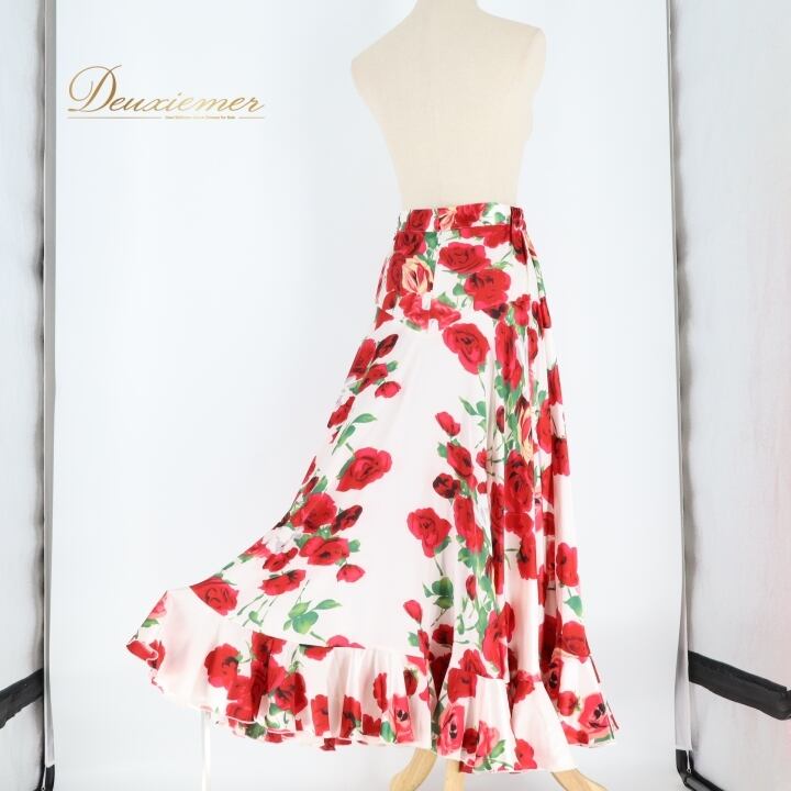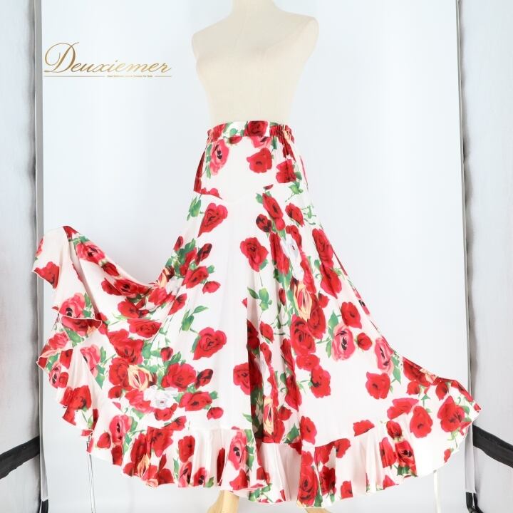 フラメンコ 衣装 ファルダ スカート 白 赤 花柄 軽い 光沢 薔薇 緑 ホワイト系 レッド系 スカート ふんわり ボリュームアップ ダンス用 衣装 ペチコート おしゃれ かわいい フェスティバル レディース 薔薇柄 花モチーフ 鮮やか 軽量