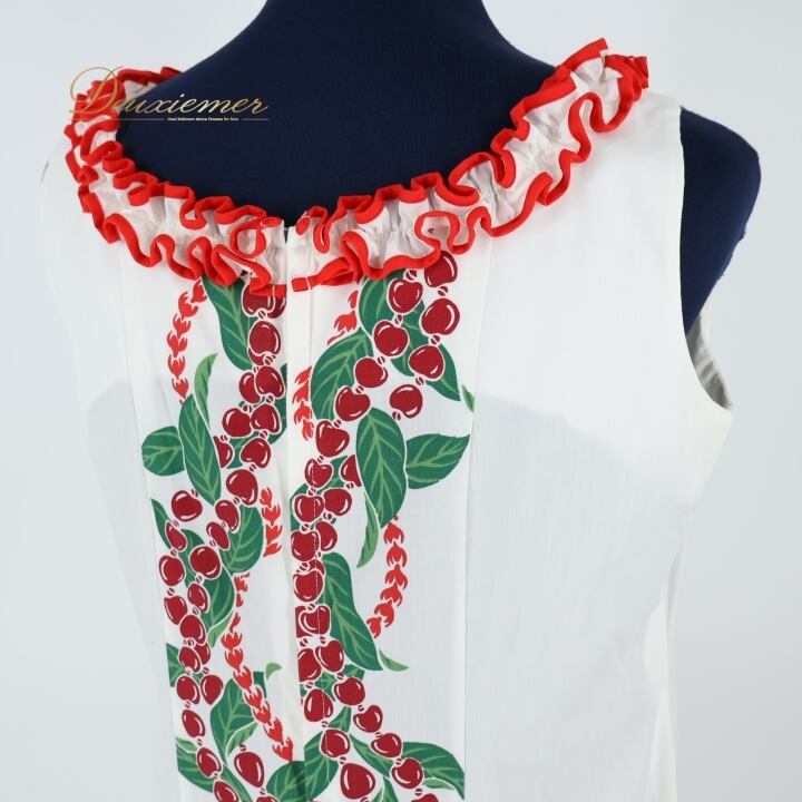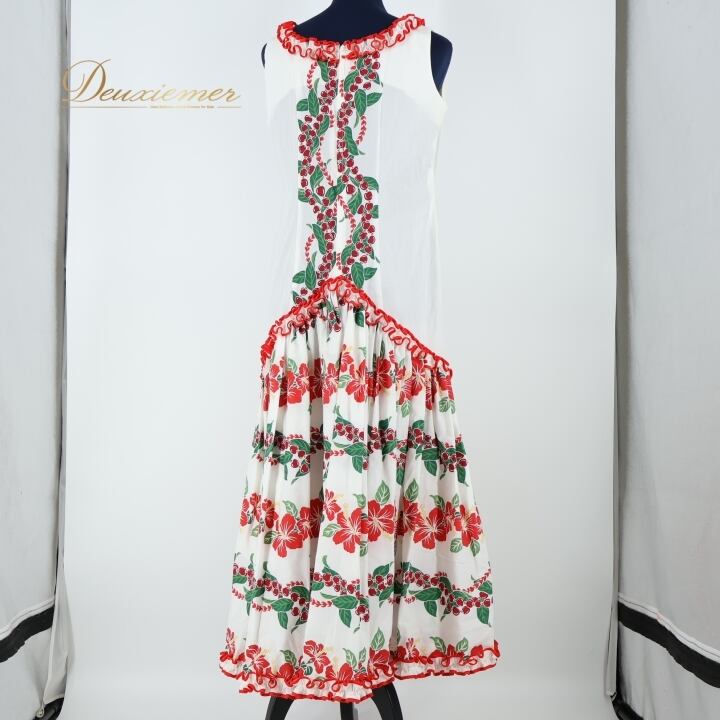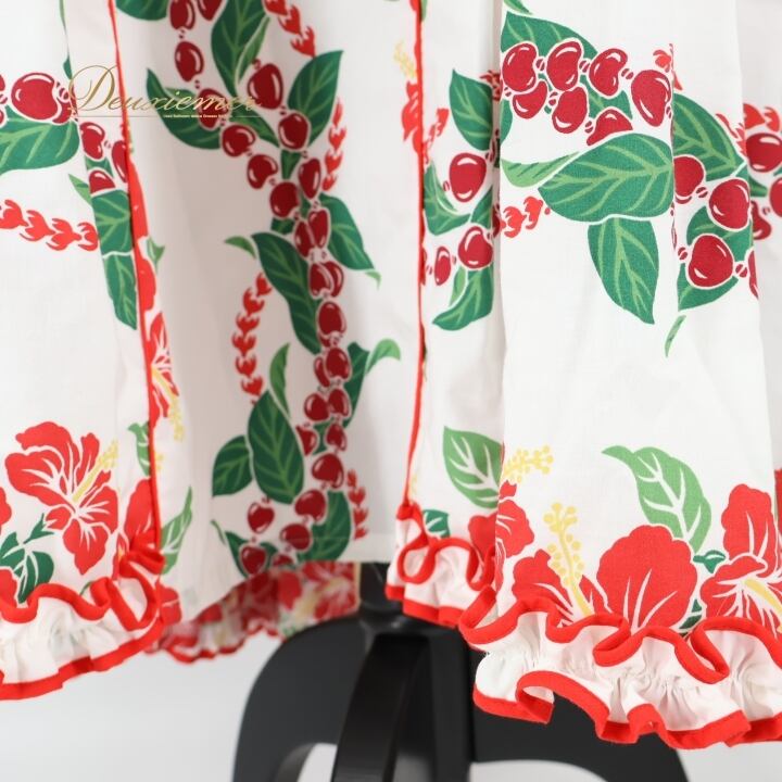 #フラダンス #衣装 #ドレス #ハワイアンプリント #ワンピース #フリル #かわいい #ダンス衣装 #パーティー #コスプレ #ホワイトレッドグリーン #女性用 #トルソー #ファッション #オシャレ #夏 #イベント #春 #クイーン #ENUTSU