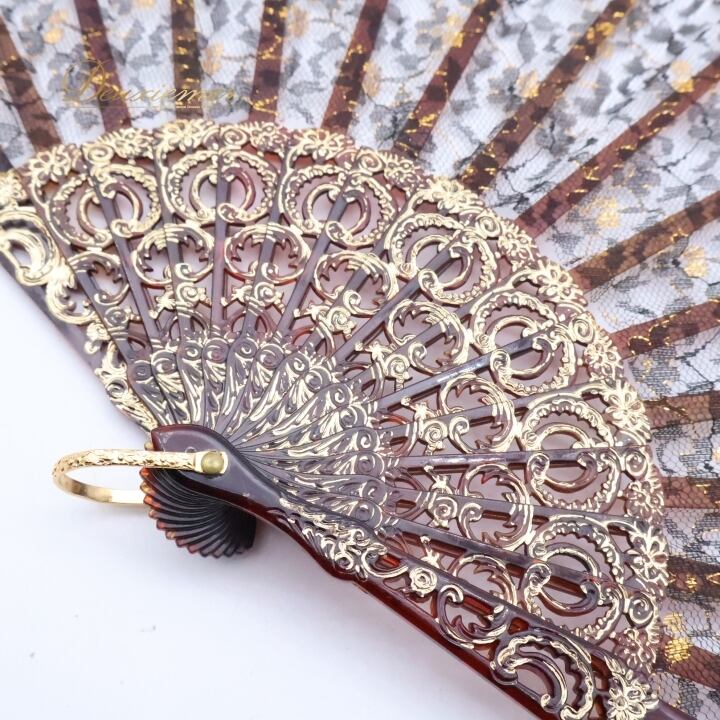#フラメンコ #アバニコ #扇子 #ファッション #レース #ハンドメイド #デザイン #かわいい #オシャレ #黒茶色ゴールド #花柄 #和風 #アート #インテリア #プレゼント #二点セット #雑貨 #日本製 #ENUTSU