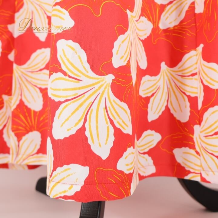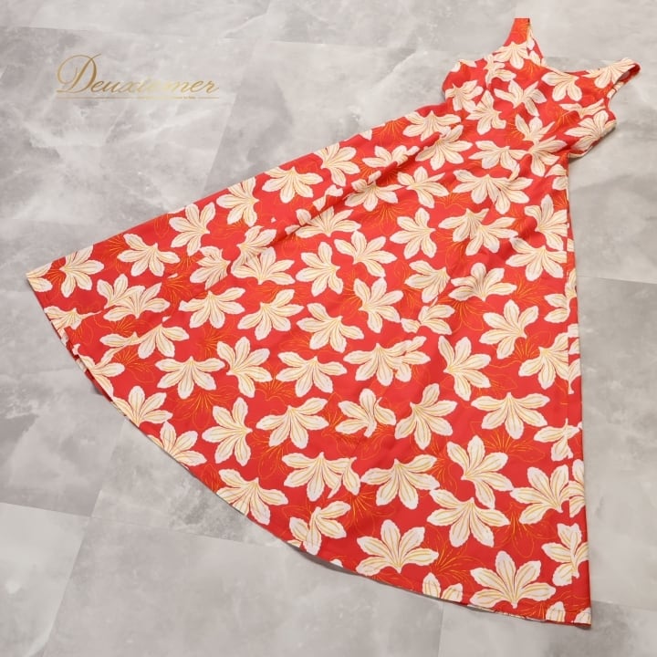 #フラダンス #衣装 #ワンピース #ドレス #日本製 #メネフネプランテーション #花柄 #鮮やか #レッド #ホワイト #イエロー #ノースリーブ #女性用 #ダンス衣装 #フラダンス衣装 #夏祭り #ハワイアン #アウトドアイベント #手作り #ファッション #ENUTSU